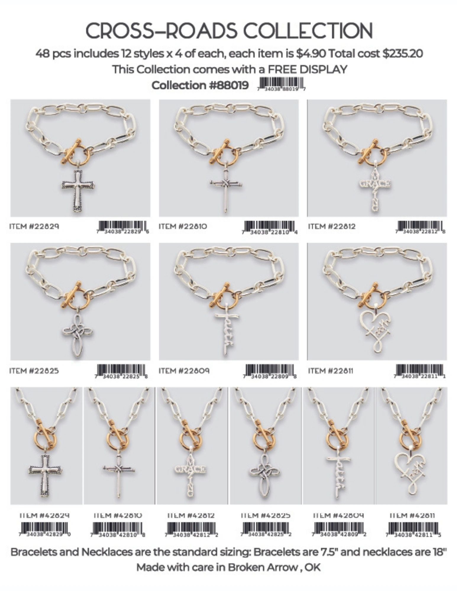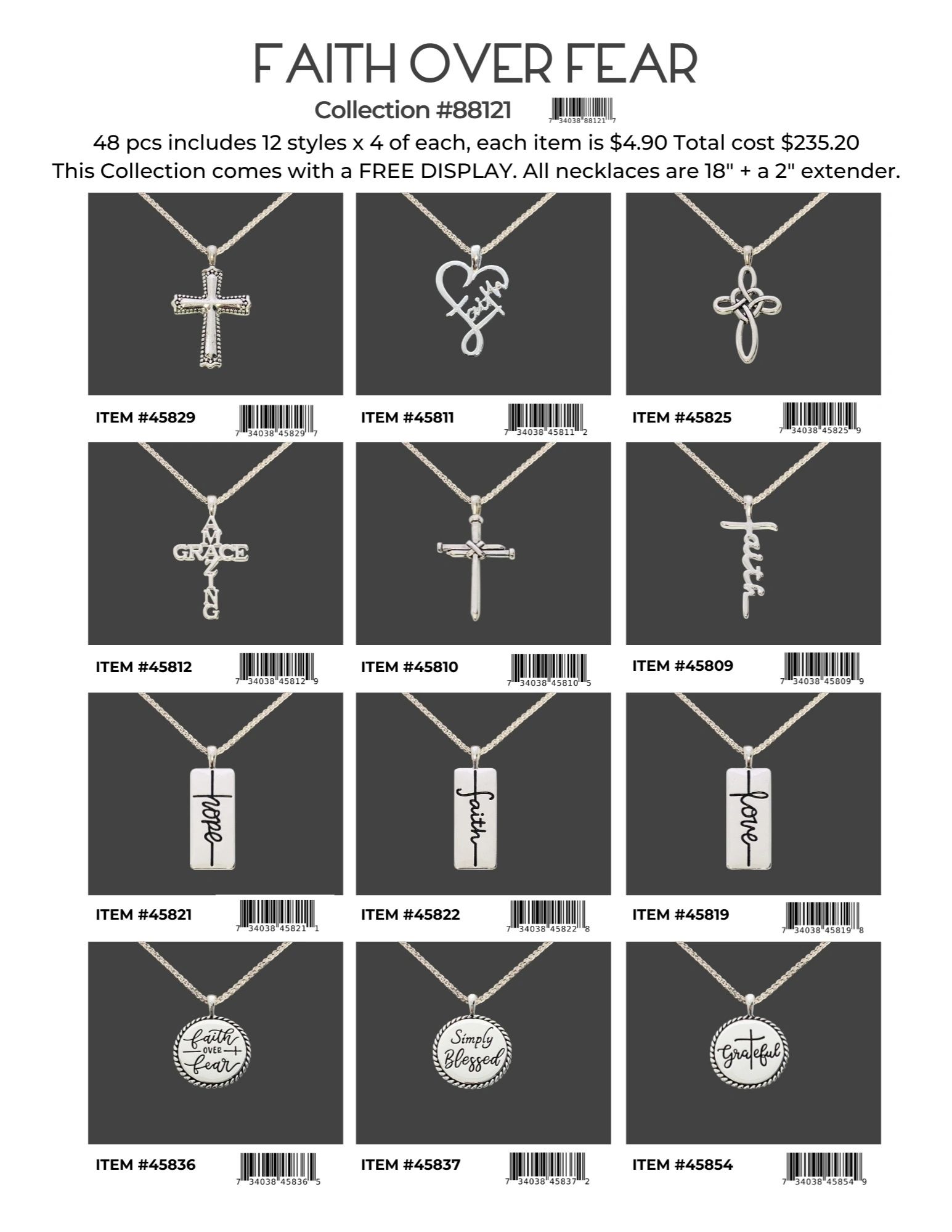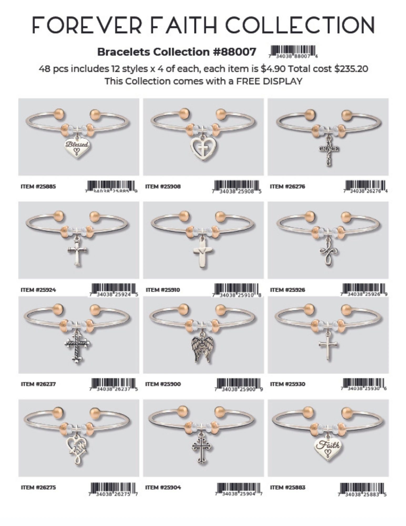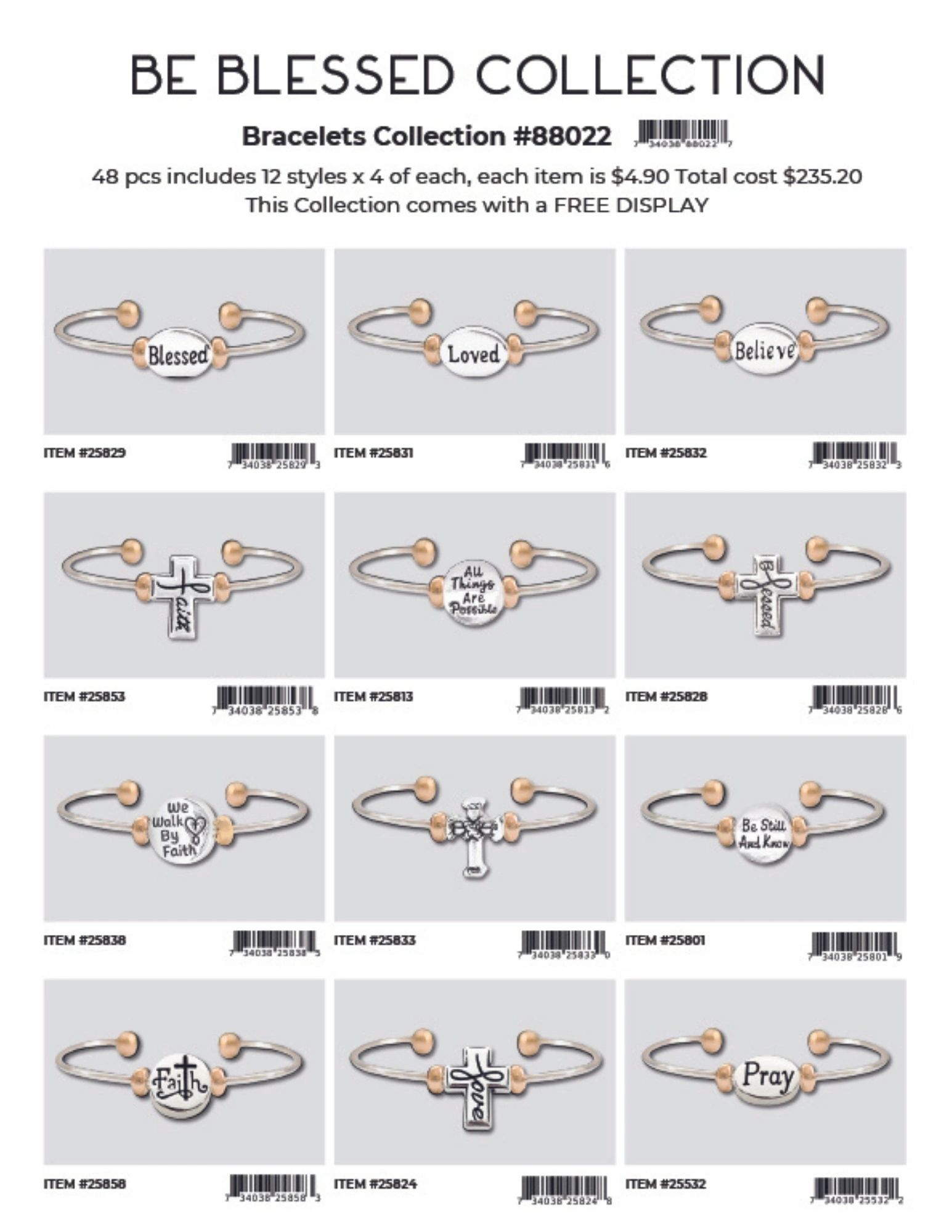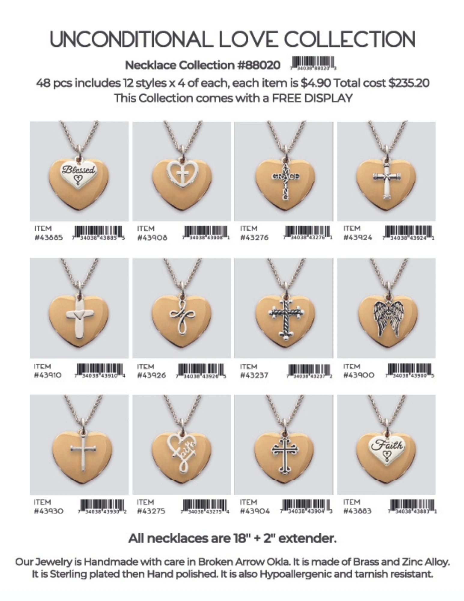 Each collection is 48 pcs includes 12 styles x 4 of each, each item is $4.90 Total cost is $235.20. Each collection comes with a FREE DISPLAY.